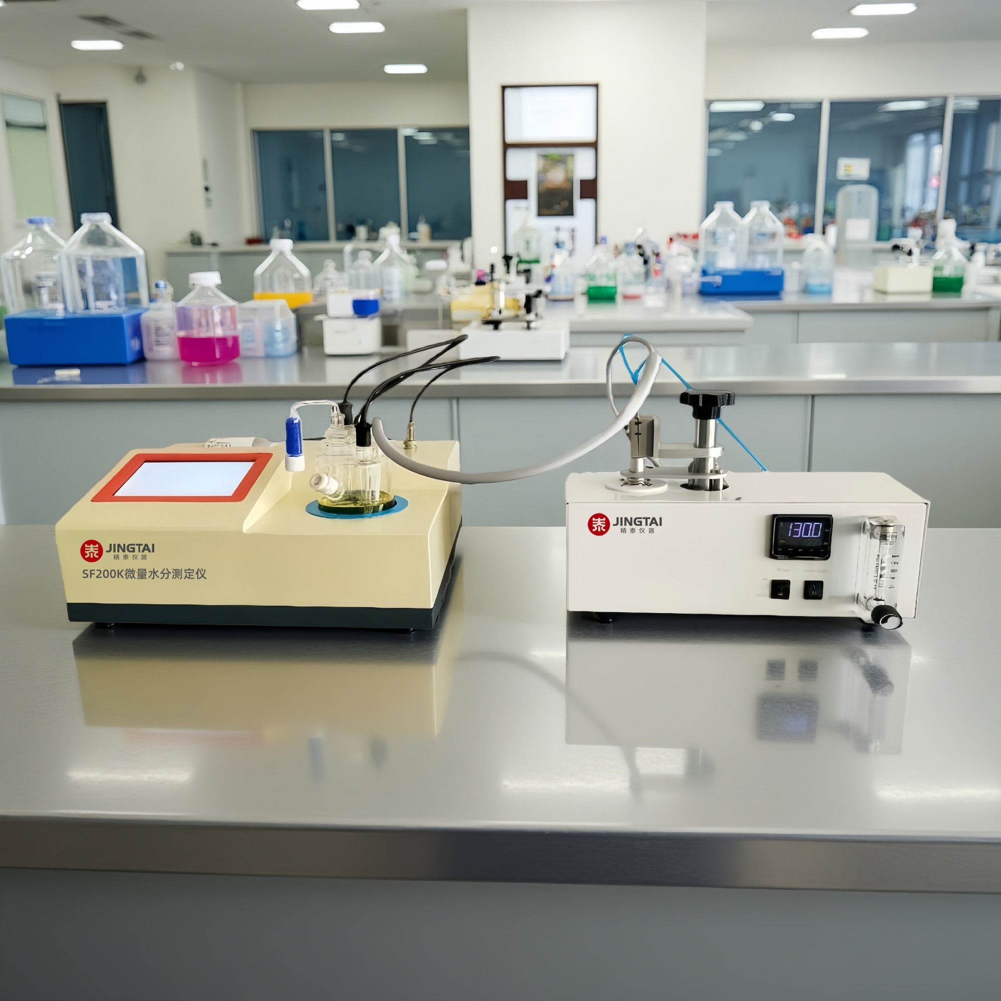 精泰SF200K卡式爐微量水分測定儀是不溶性固體樣品(如鋰電池正負極材料,膜片等)及高沸點石化產(chǎn)品(如橡膠、塑料粒子、潤滑油脂、原油、瀝青等)微水檢測的有力工具,可有效避免高沸點物質(zhì)對卡氏水分檢測系統(tǒng)的干擾(尤其是電解液和電極)。